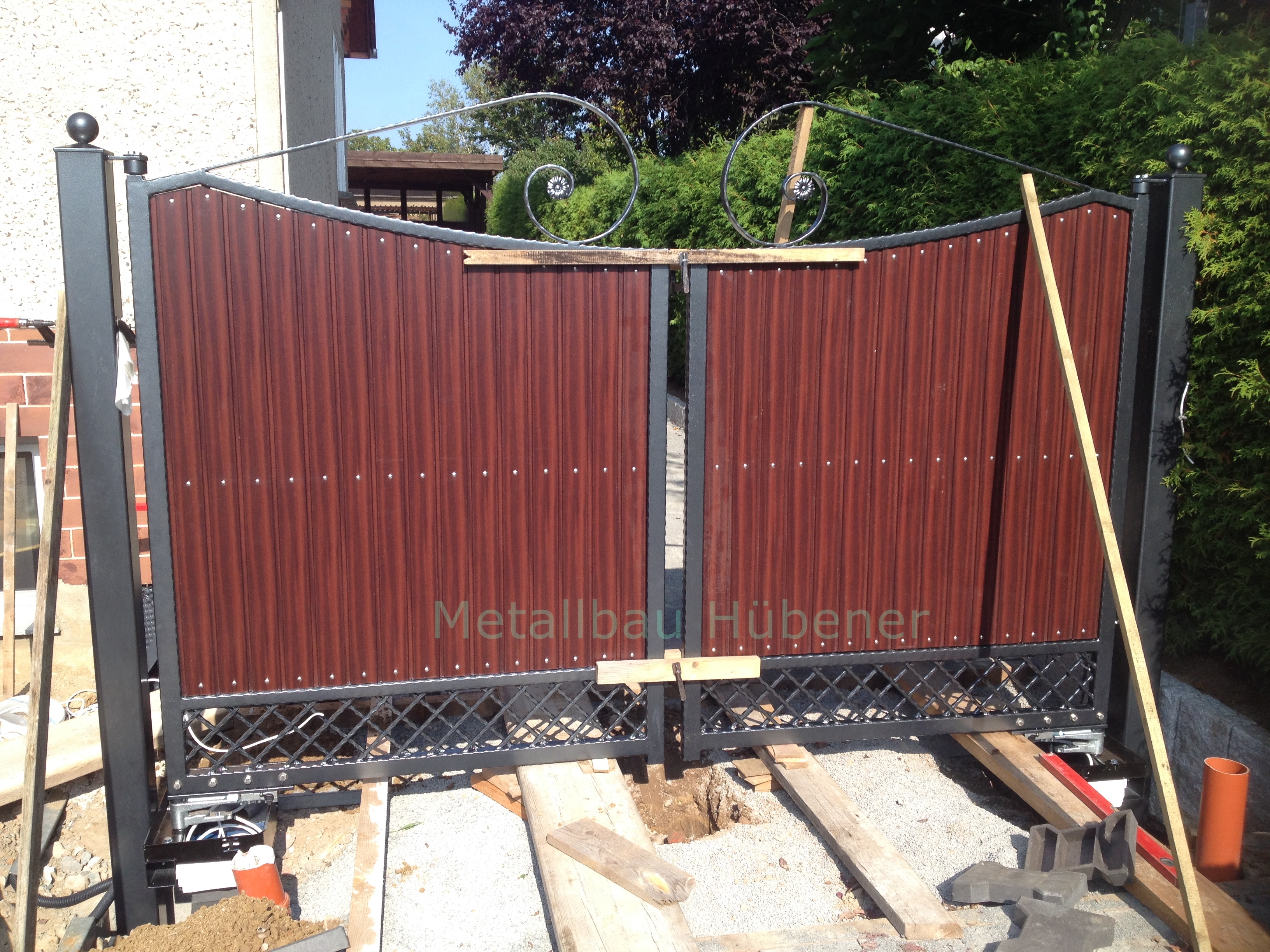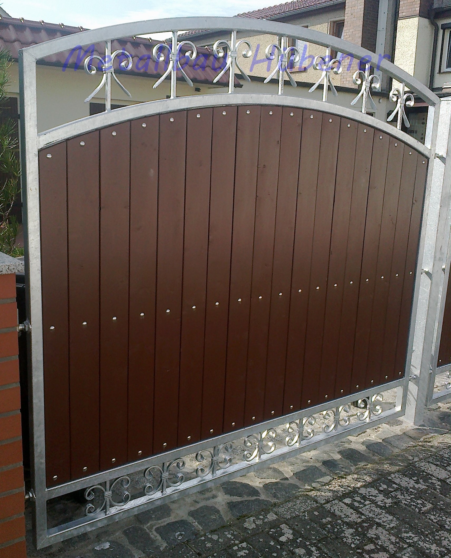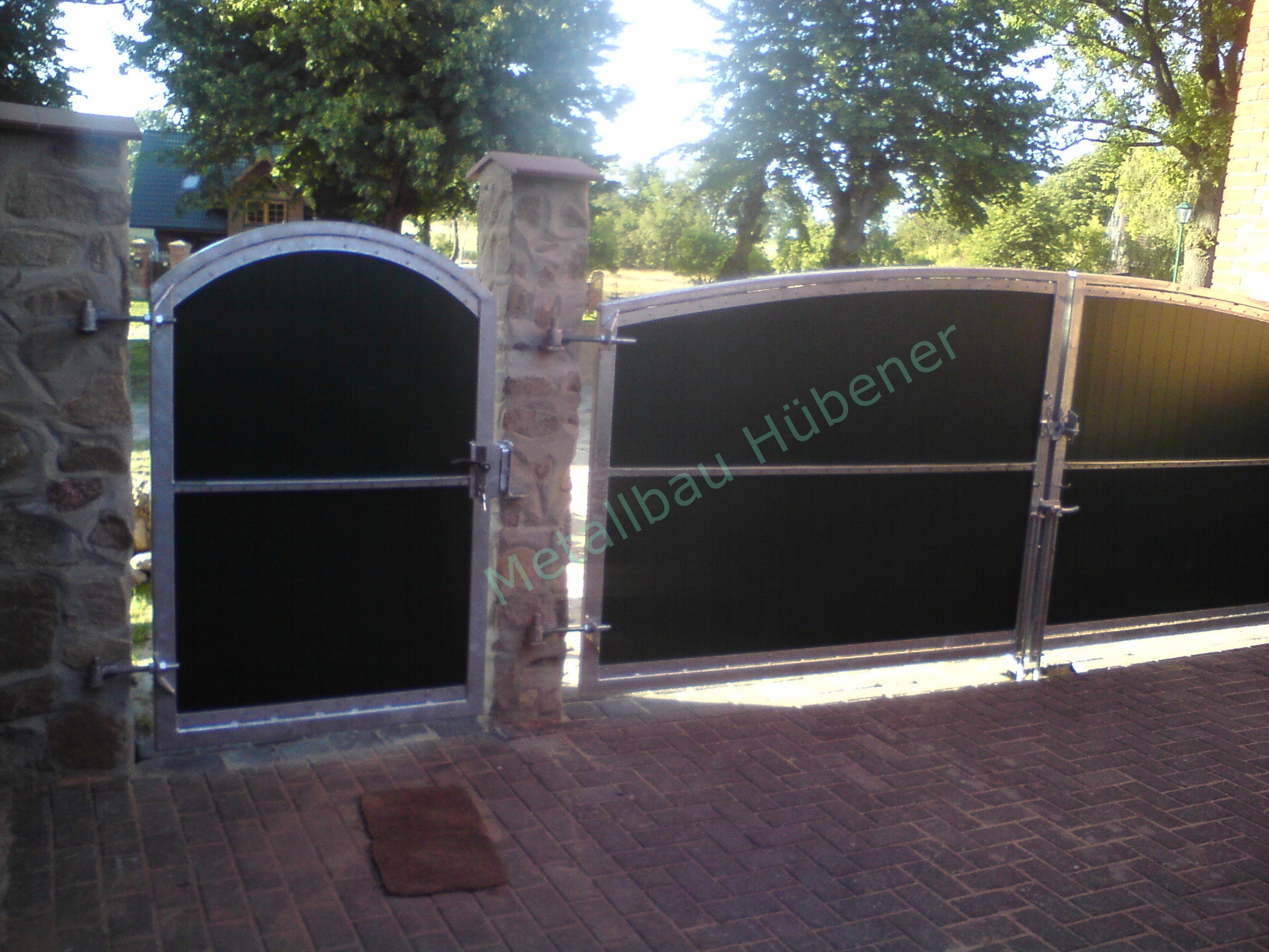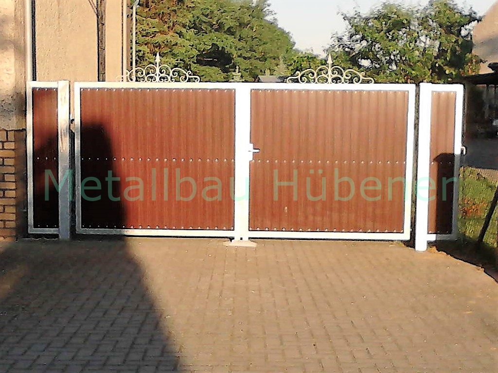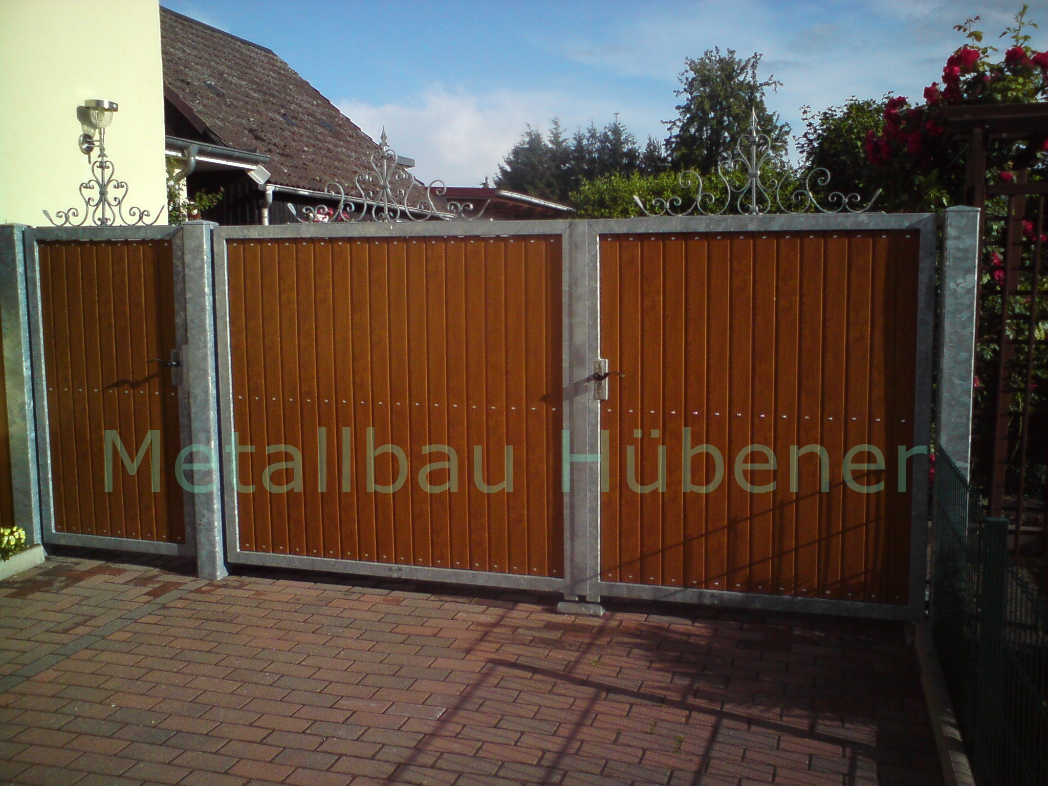 Tore verzinkt, pulverbeschichtet, mit Verzierungen und Füllung.