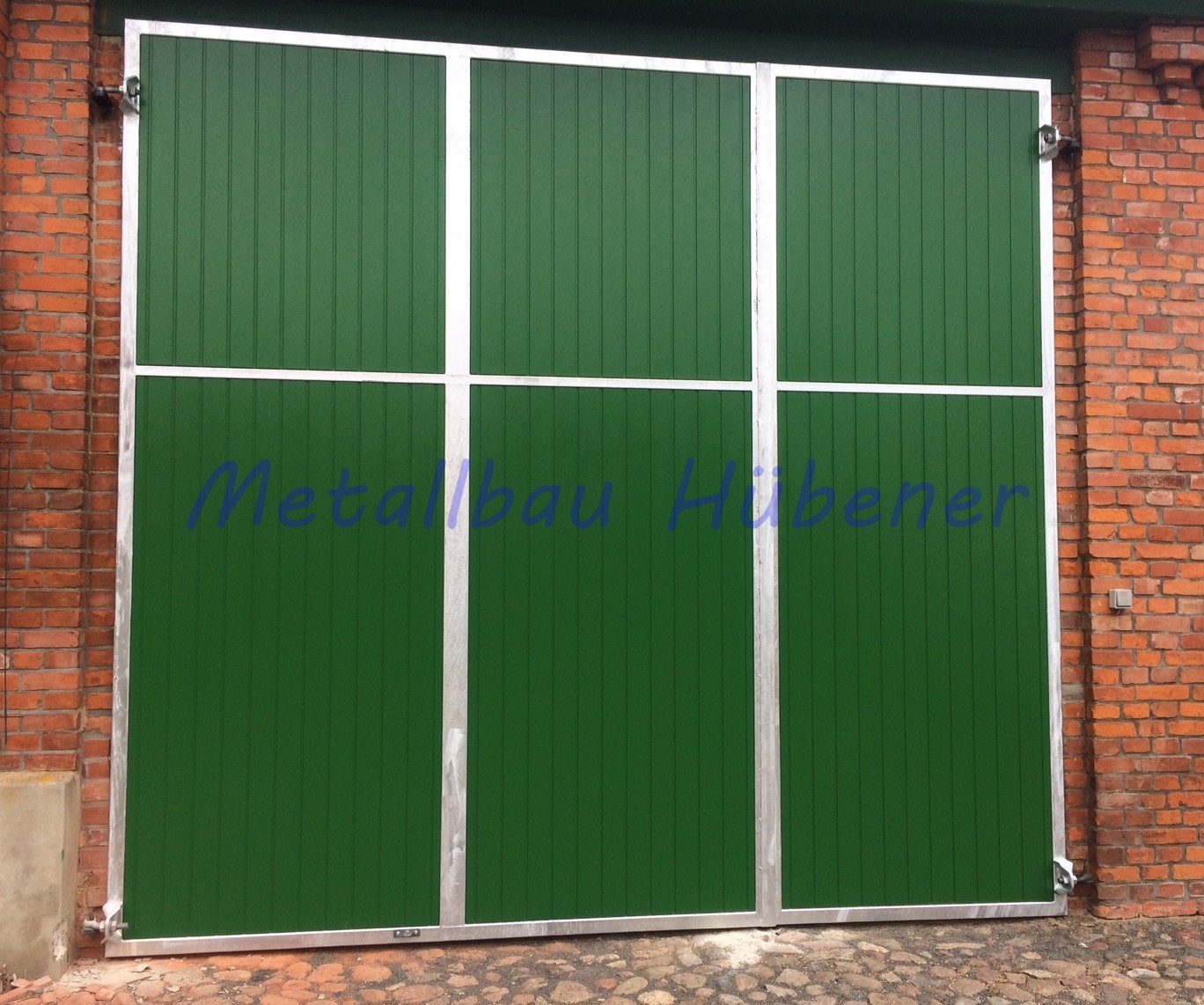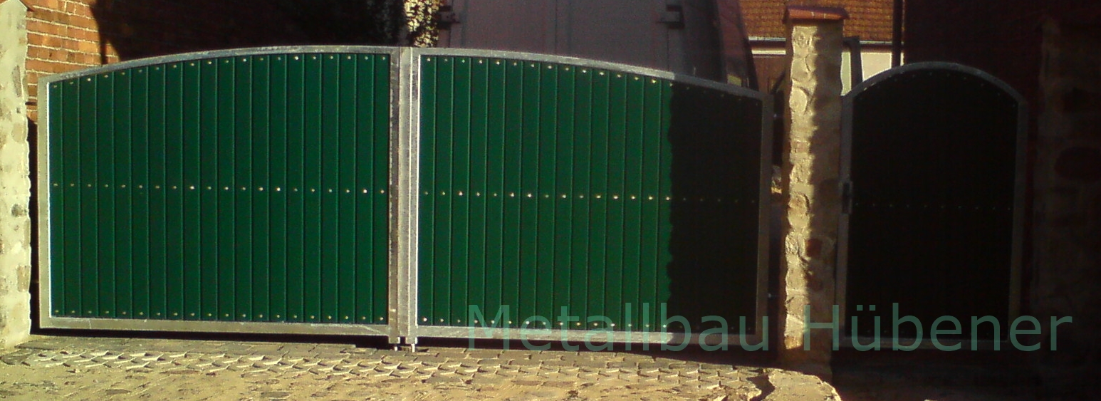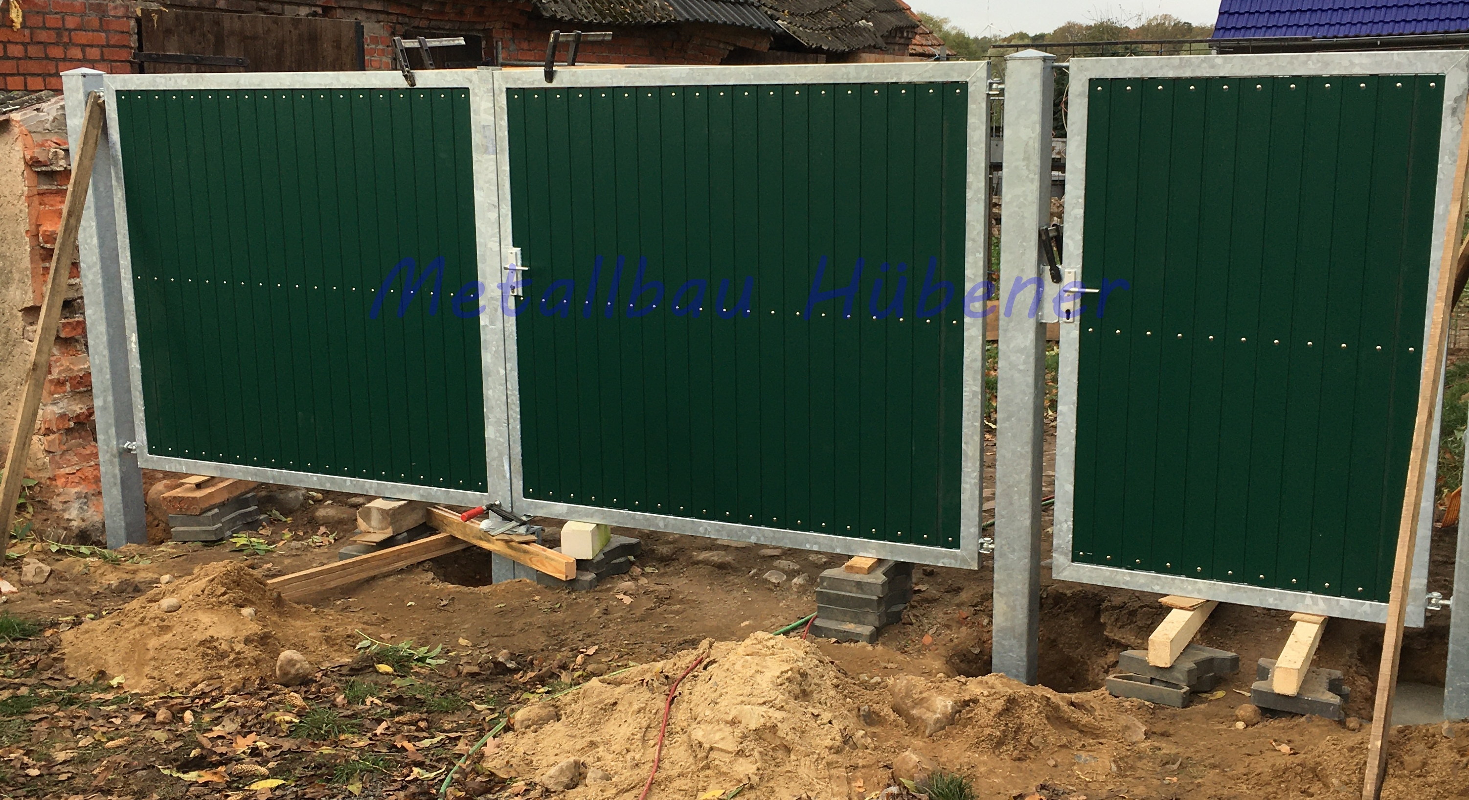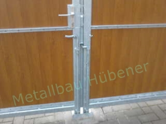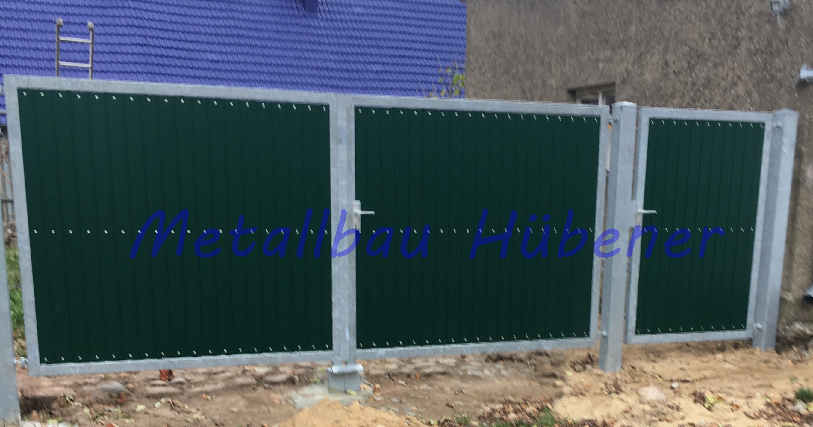 Tore verzinkt, pulverbeschichtet, mit Verzierungen und Füllung.